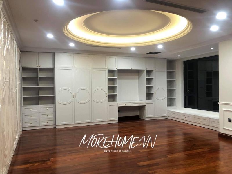 Sản phẩm kệ ngồi cửa sổ bằng gỗ tự nhiên sơn trắng cho phòng ngủ chung cư, nhà phố, biệt thự phong cách đương đại