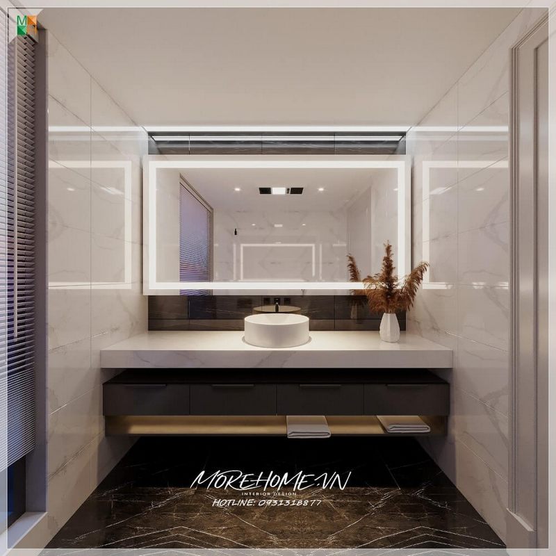Chậu rửa mặt phòng tắm bằng đá lavabo là một món nội thất không thể thiếu, được chia thành hai bên và chú trọng thỏa mãn nhu cầu làm đẹp cho không gian phòng tắm.