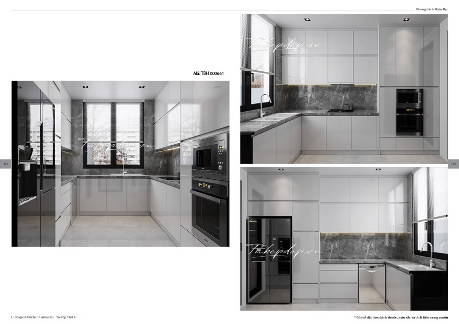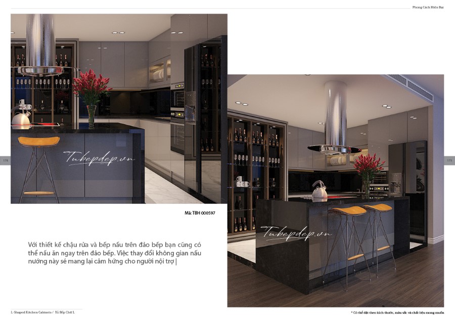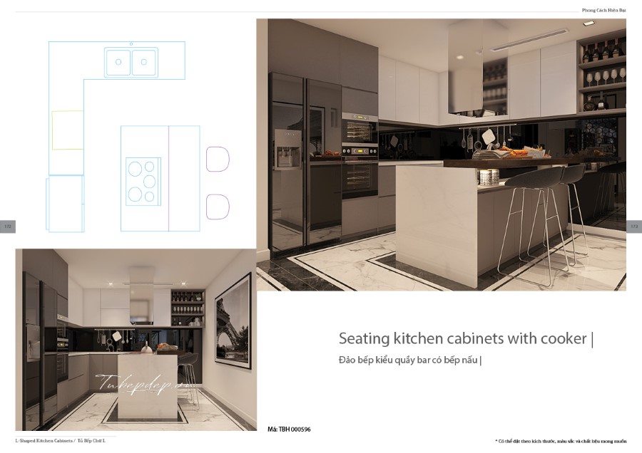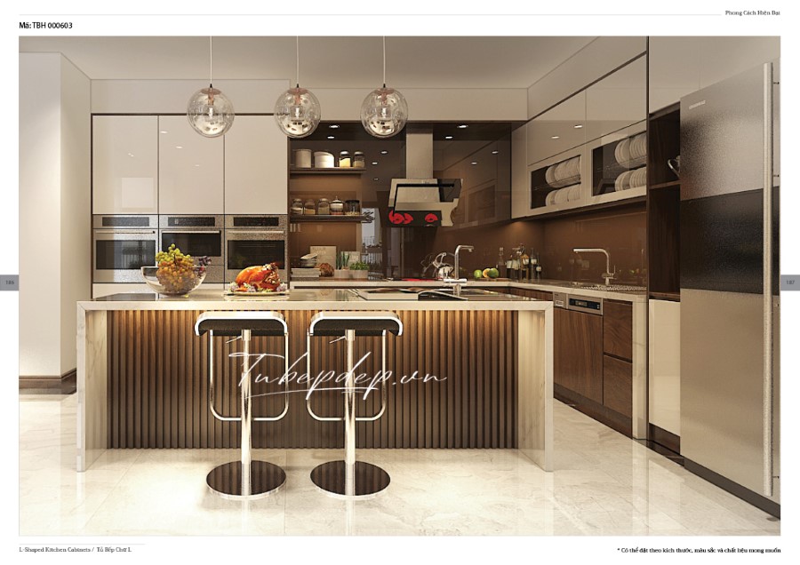 Mẫu thiết kế phòng bếp với hệ tủ bếp chữ bằng gỗ công nghiệp cho chung cư, nhà phố, biệt thự hiện đại